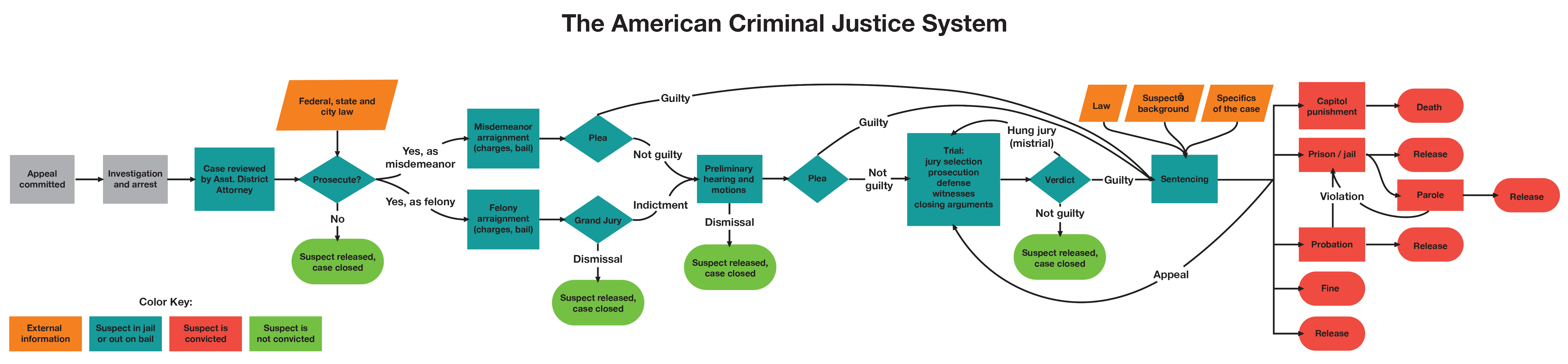 Screenshot of Criminal Justice flowchart showing the first half of the American criminal justice process